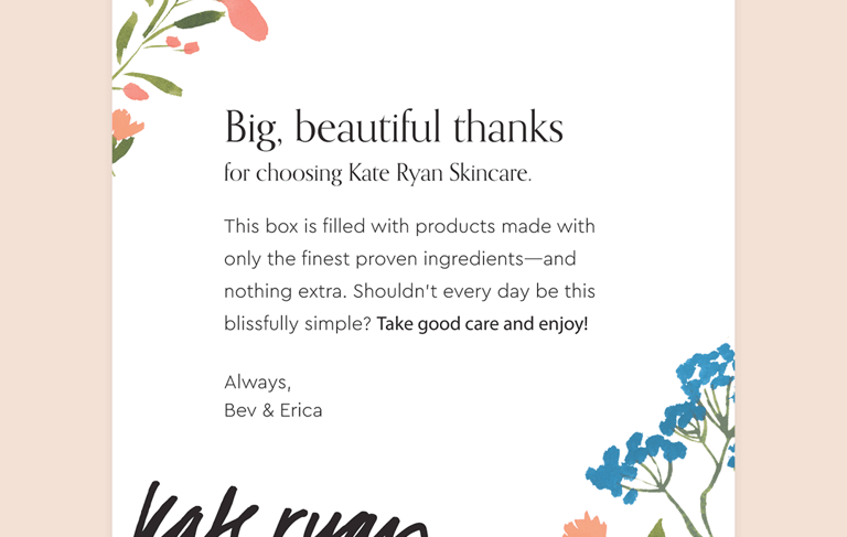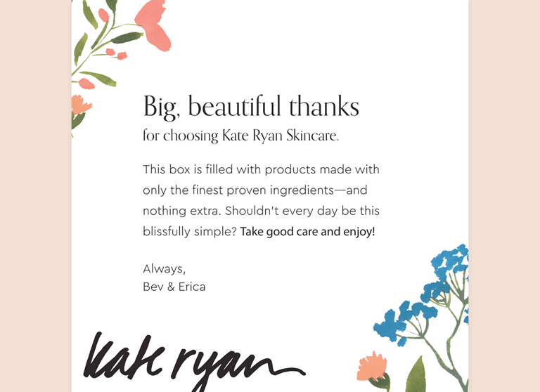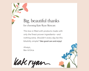 Big, beautiful thanks for choosing Kate Ryan Skincare.